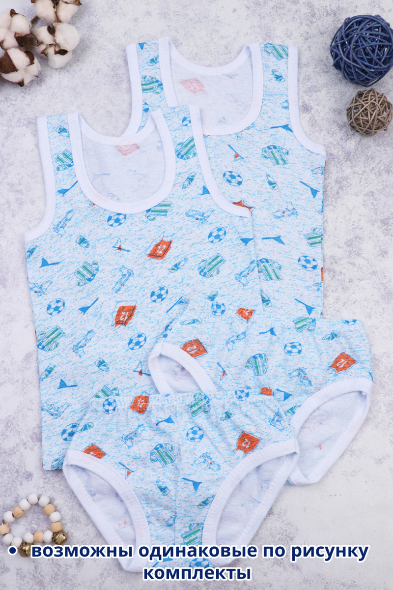 В комплект входит 2 майки и 2 трусов с мягкой, эластичной резинкой. Белье не раздражает детскую кожу, благодаря нежному материалу и мягким швам. Милый дизайн будет дарить хорошее настроение своему обладателю. В нашем ассортименте представлены разные рисунки, они могут отличаться от представленных на сайте.
