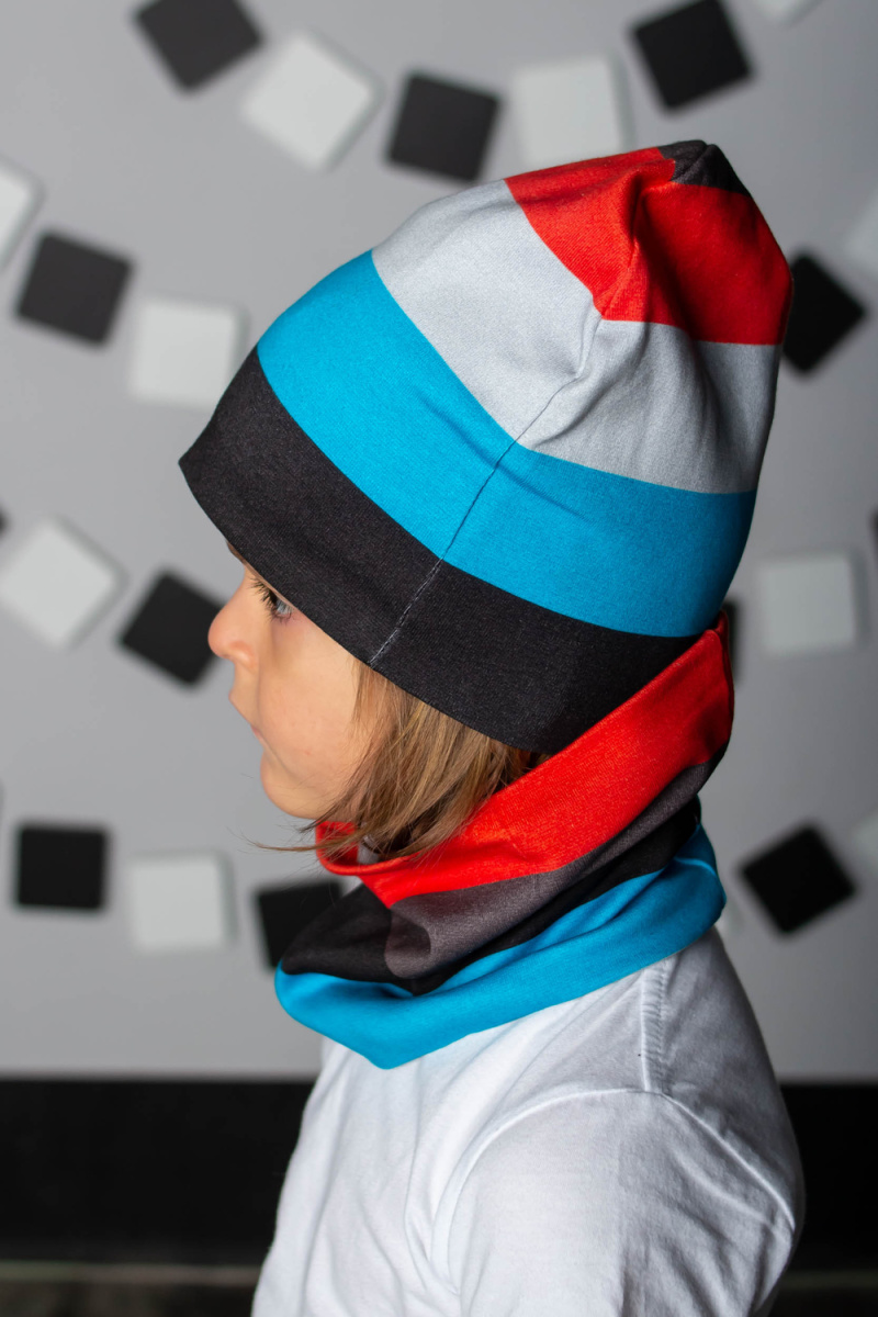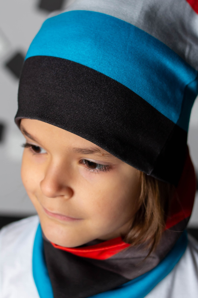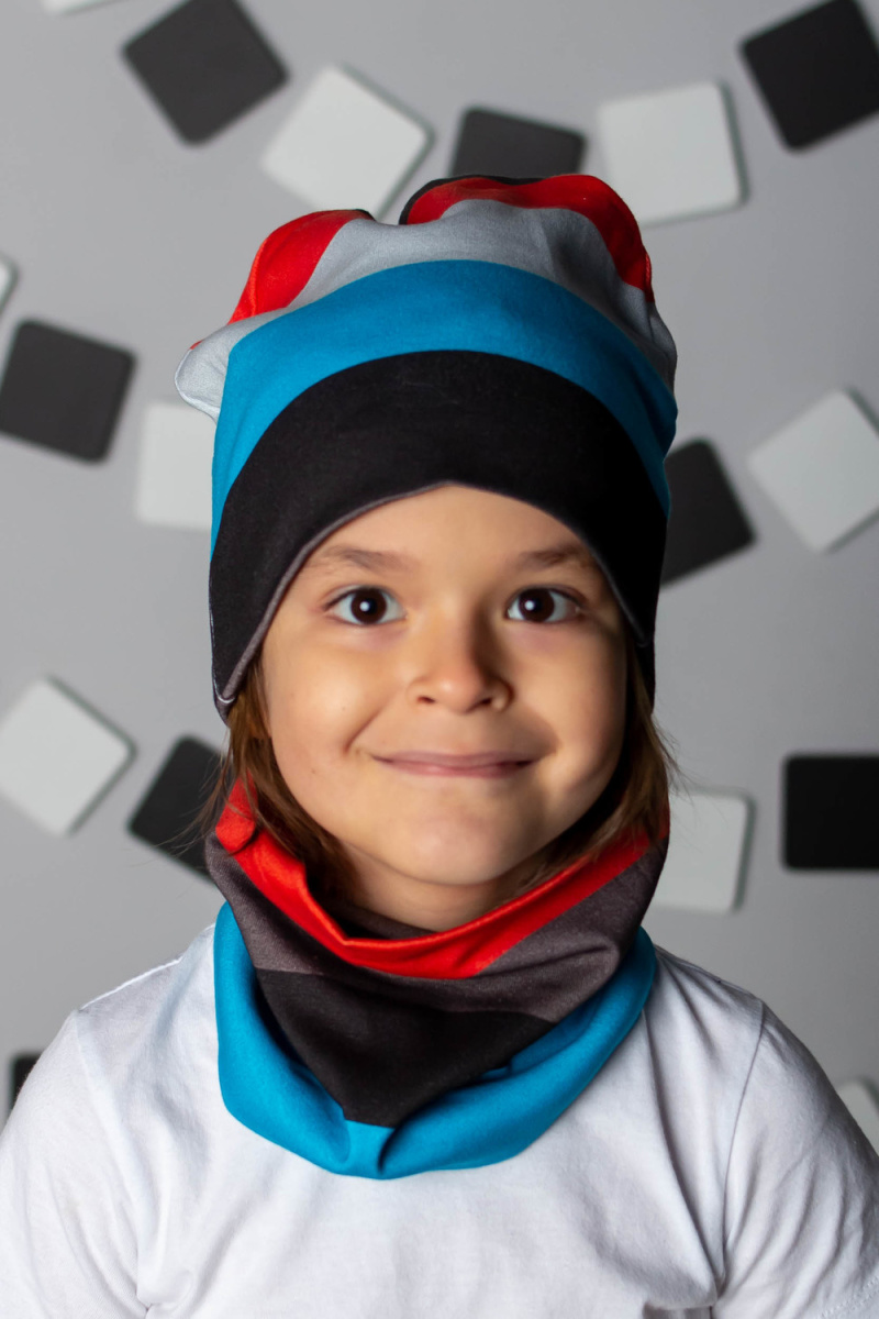 Комплект: шапка + шарф-снуд для мальчиков в насыщенной современной расцветке