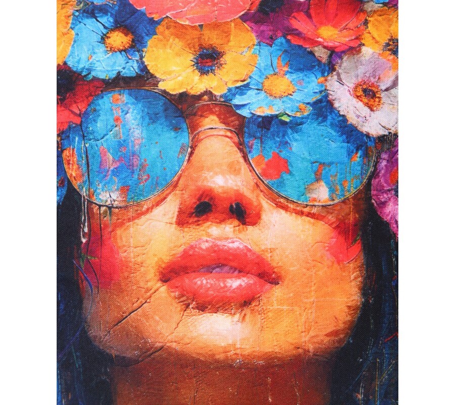 Декоративная интерьерная наволочка из габардина "Девушка с цветами" на потайной молнии. Размер 35х35 см.