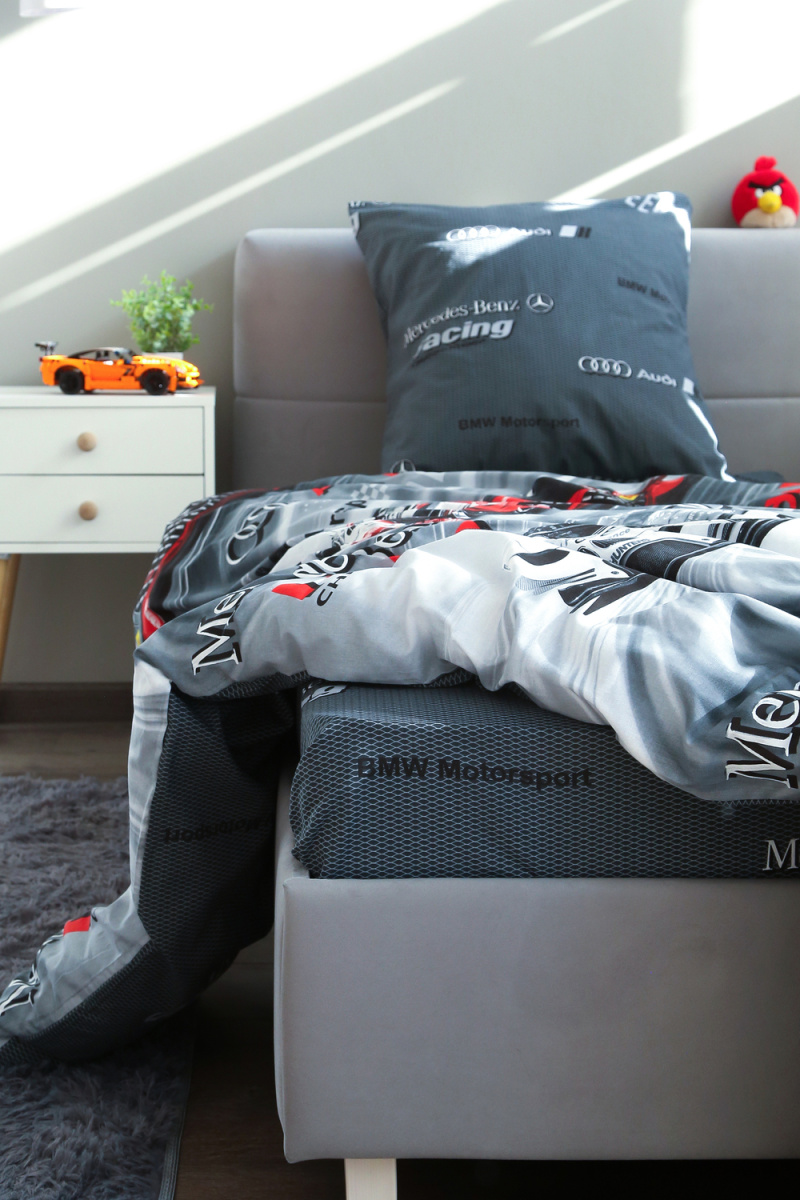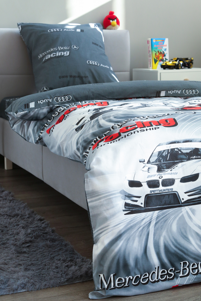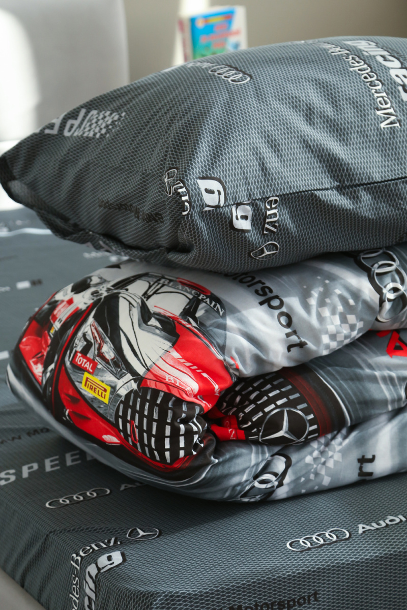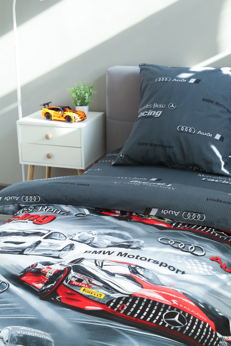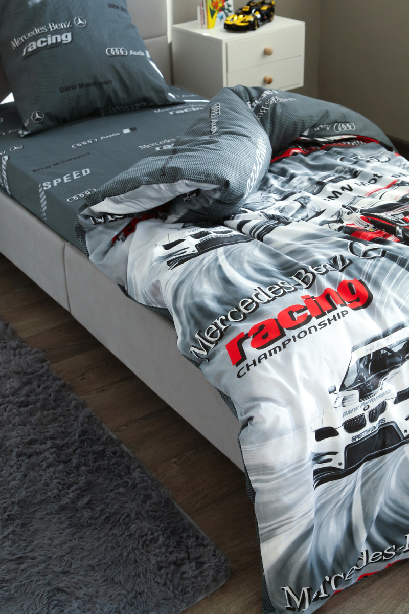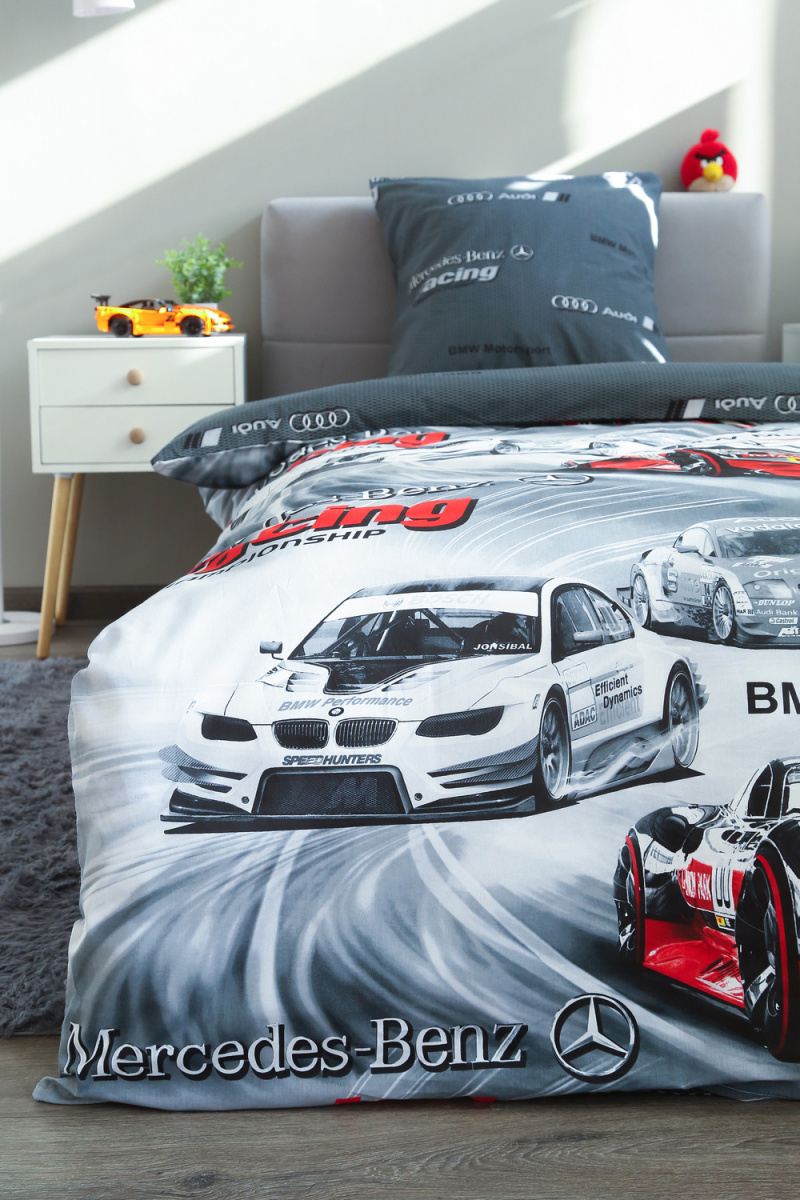 Дизайн с современным принтом автомобилей (Mercedes, Audi, BMW) добавляет интерьеру яркости и индивидуальности. Серебристый оттенок сочетается с классическими и современными стилями оформления.