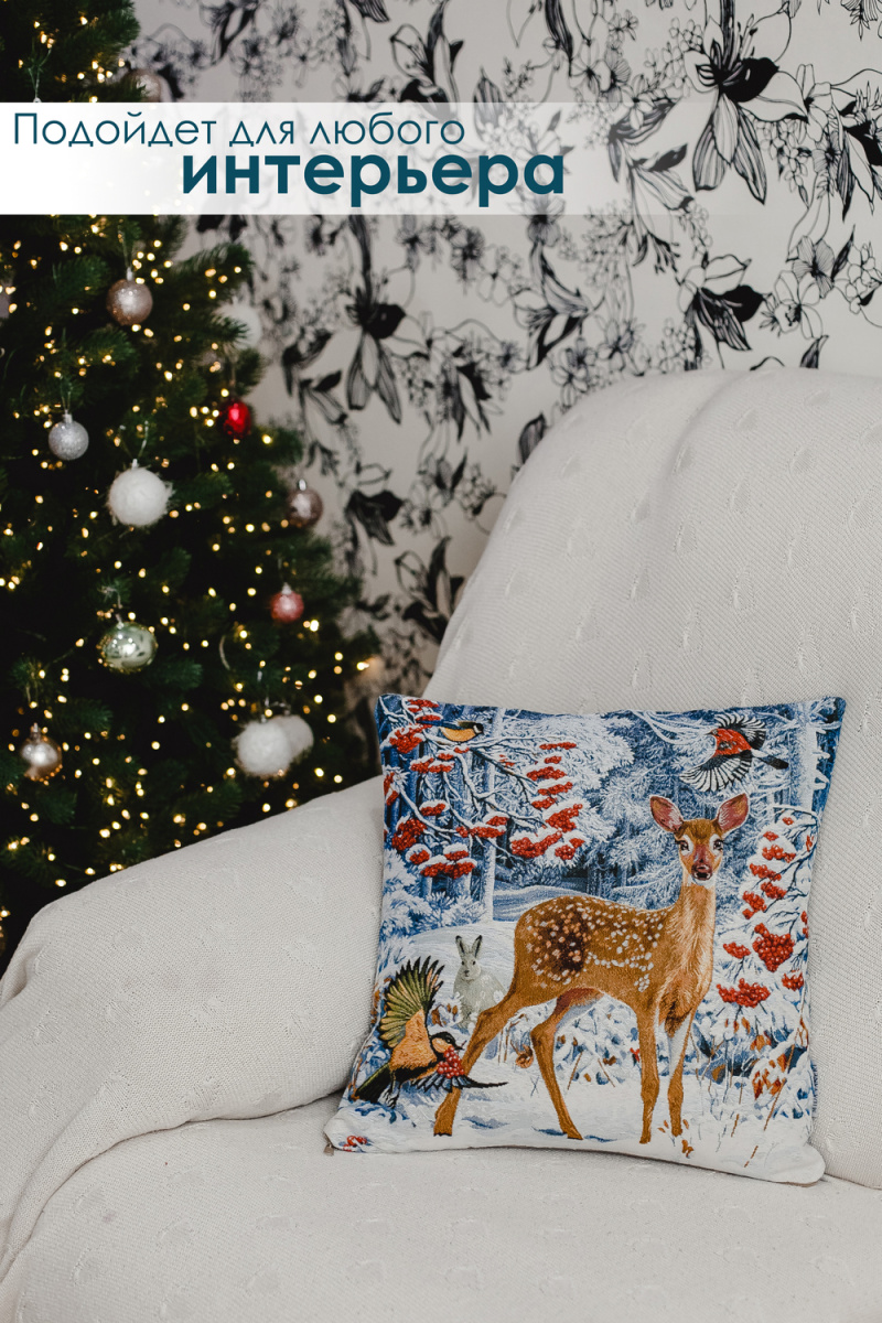 ВАЖНО размер может не много отличаться +- 3 см!!!!! Односторонняя наволочка декоративная размером 45х45 см(+-3см). У наволочки гобеленовой молния находиться в нижнем шве изделия. Уход - машинная стирка при 30 градусах на деликатном режиме с закрытой молнией. Не смешивать при стирке с другими тканями. Утюжить на среднем температурном режиме. При правильном уходе наволочка декоративная прослужит долгие годы в неизменном состоянии: не линяет и не дает усадку. Качественная и удобная в использовании, устойчивая к истиранию красок и деформациям при стирке, такой чехол на подушку будет долгие годы радовать красотой и эстетичностью! Обратная сторона наволочки на диван из однотонной гобеленовой ткани. Прекрасный рисунок на наволочке декоративной новогодней гармонично дополнит самый изысканный интерьер, привлекая внимание своей теплотой и оригинальностью. Мягкий материал необычайно приятен и прочен. Гобеленовое изделие так же подойдет в качестве ПОДАРКА вашим родным на новый год, друзьям и близким маме или бабушке)