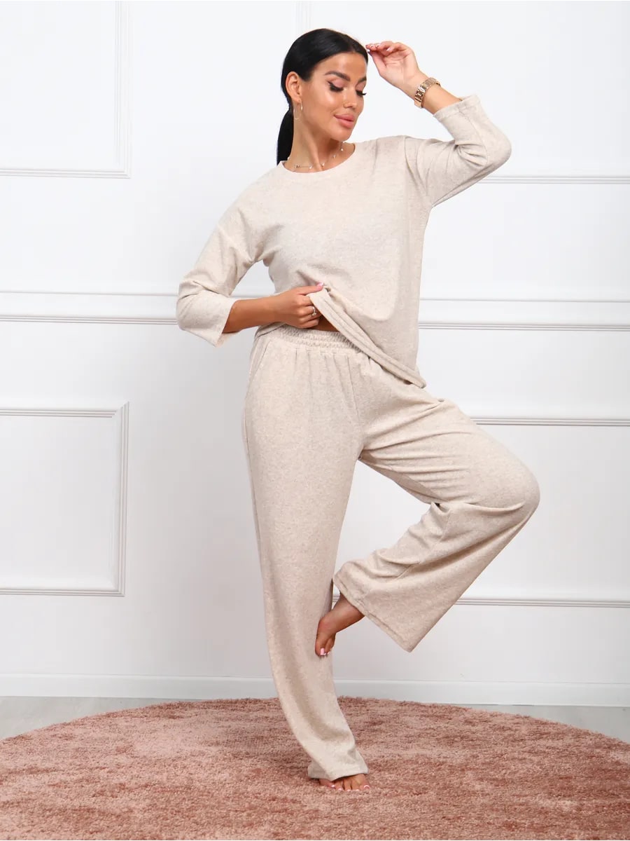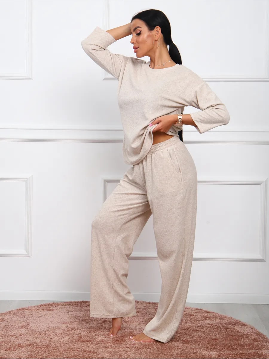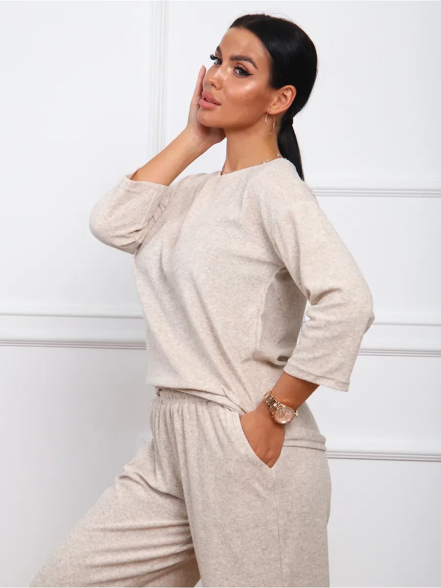 Женский костюм, который идеально подойдет для теплых весенних и летних дней. Обладает теплотой, что делает его подходящим вариантом в период весны и лета. Комплект с рукавом 3/4, отлично подойдет для домашних посиделок. Одежда базовая и однотонная, что позволяет легко комбинировать с другими элементами гардероба. Махровый материал создает невероятно мягкое ощущение, обеспечивая комфорт в течение всего дня. Этот теплый трикотаж отлично удерживает тепло, поэтому вы всегда будете чувствовать себя уютно даже в самые холодные дни. Брючный вариант расширенного кроя оверсайз обеспечивает свободу движений и подходит для женщин больших размеров. Этот модный комплект выполнен из махры великолепного качества, что делает его незаменимой частью любого гардероба и для посиделок дома. Он разработан специально для тех женщин и девушек, которые предпочитают стиль. Мягкий текстиль не только приятно носить на теле, но он также прост в уходе. Домашняя одежда поддерживает молодежный стиль благодаря современному дизайну и продуман